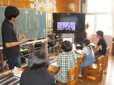 3・4年生は,総合的な学習の時間に「プログラミング」の学習に取り組んでいます。今回は,自分の考えた方向にボールを動かす練習です。子どもたちは,タブレット端末を使いながら,どうすれば上手く動かすことができるかを考えながらチャレンジしていました。プログラミング的思考を身に付けていくために今後もタブレット端末だけでなく,ペッパーくんも活用していく予定です。