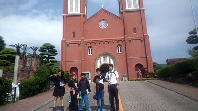 26日(日)の長崎市内は,天気もよく,予定どおりの学習ができました。講話を聞いた後,平和公園や浦上天主堂などを歩き,実際に被爆した建物跡などを見てまわりました。事前学習で調べていたこともありましたが,初めて知ることも多くありました。子どもたちは,歴史の事実を前にしっかりと学びを深めていました。