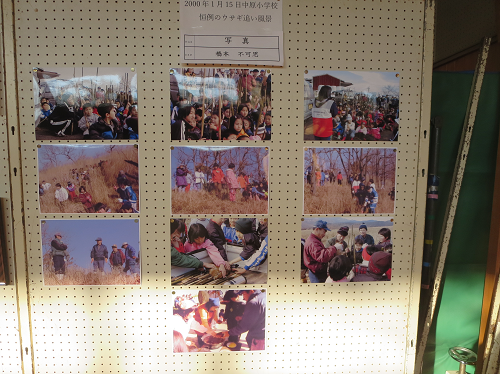 少し前の中原小の行事 うさぎ追いや、学校以外の子どもの写真、習字教室の作品を展示。