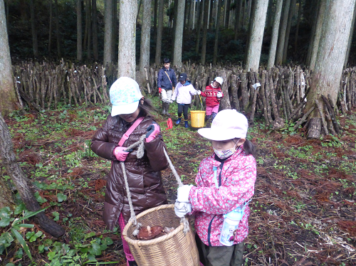 実際に二人組でしいたけをとってかごいっぱいにしました。