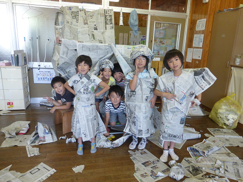 テーマごとにグループに分かれ、どんな内容にするかを考えて、植物新聞 図書新聞 保健新聞を作りました。