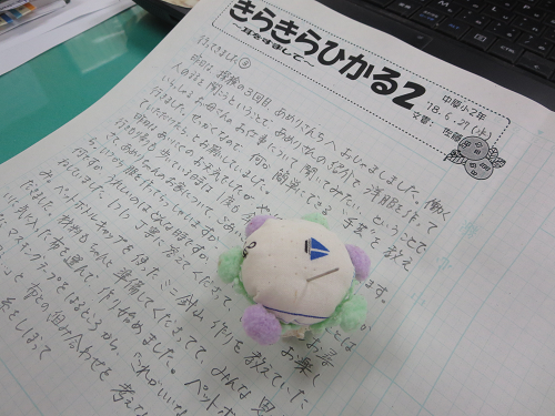 毎週の時間割版とは別に、毎日発行の手書き学級通信(B4)を発行しています。