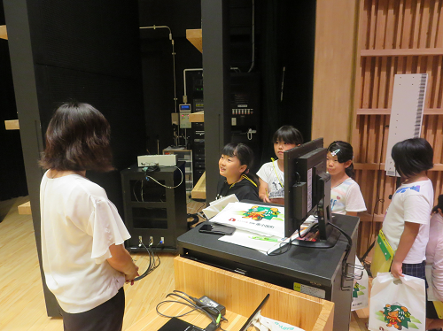 きよらホール、最前列の座席に座る後頭部いくつかは、中原小の子どもたち。