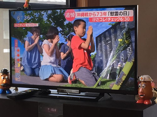 日本の全体へ向け、73年前のことを通して「沖縄のこころ」を伝えるニュースを見た先生は、「沖縄の小さな子が手を合わせていたの。沖縄の人の問題?沖縄の子どもだけの事じゃないよね。」と言いながら朝の子どもを迎える準備をしていました。