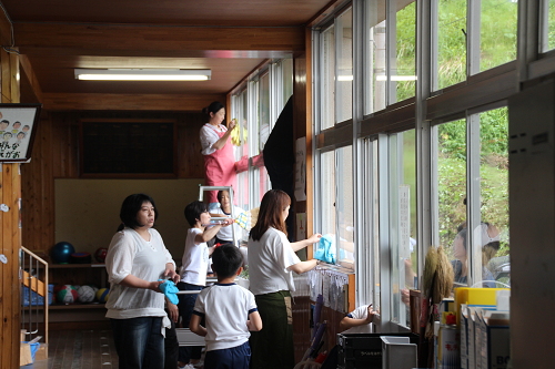 雨が降って朝ミーティングができない日は、室内そうじをしています。