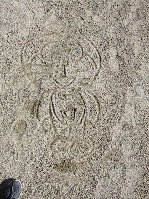 運動場に、小さな草がもじゃもじゃとはえてくるので、たびたび、かわるがわる、先生方が運動場を車に金属のをくっつけて、きれいにならしてくれています。