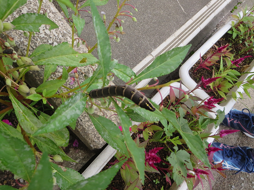 朝ボラに出ると、職員室前花壇をのぞきこんでいます。