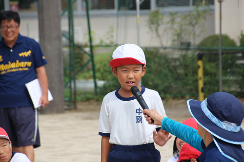 『カマキリ』さんも子どもの走るコースに入って応援していたので、退場してもらいました。