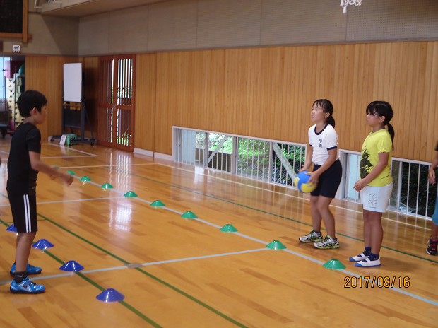 「落ち着いて」と声をかけたり、低学年の女の子には、優しくボールをあげて、高学年同士のパスはシュッとスピードをつけたりを自然にチームで。