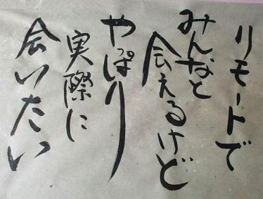 6年生の作品です。みんなと離れているときにリモートで会えて嬉しかったけど、やっぱり実際に会いたいという気持ちがストレートに表現されています。卒業までの今というときを1分1秒まで大事に大事に過ごしていってほしいと思います。