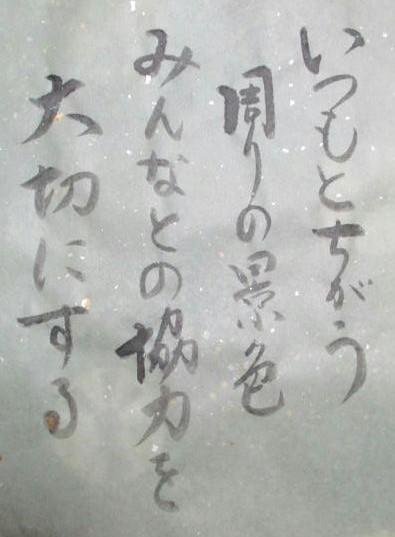 中原小の子どもたちが作った人権標語を「書」で表現してみました。これからも一人一人の人権標語を紹介していきたいと思います。第1回は、6年生の人権標語の作品です。新型コロナウィルス感染症拡大防止により、臨時休校が続きました。早く学校が再開して、みんなと会いたいと思っていました。そんな思いが込められています。