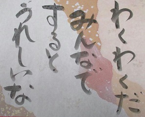 みんなですると、何でもたのしいです。べんきょうも!あそびも!1年生の作品です。