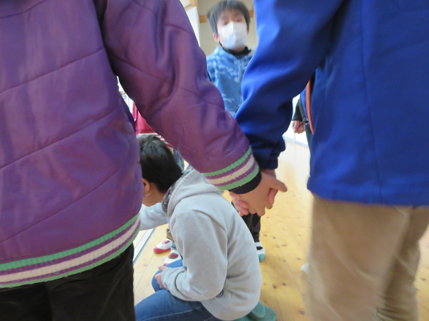 12月12日に計画されている2回目の支援学校との交流内容を考えるために、縦割り班でならびました。