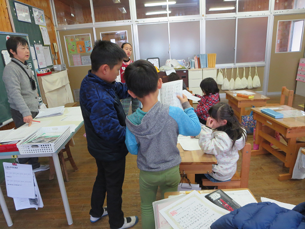 5.6年生教室では町長さんが、授業のあと一緒に。