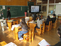 在校生からのお別れのメッセージは、登校日に撮影し、5.6年の先生が編集してくれたものが、電子黒板から流れました。