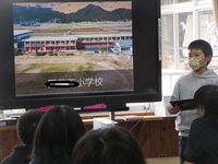小さいときに病気をしたこと、入学式の時に緊張したこと 複式学級になったときの気持ち ぎんなん祭での発表のことなどをふりかえって、自分の心の中の記憶と、周りの人からそう見えていたんだなということのちがいなど、スライドでは見えない こころの部分の成長を紹介。