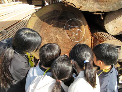 11月6日(水)、4年生は、Forequeへ出向き、木育の授業を受けました。今回は、小国杉の年輪のわかる丸太を見ながら説明を聞き、その後、デジファブ体験活動をしました。デジファブとは、デジタルファブリケーションの略称で、コンピューターでデザインしたデジタルデータをつかってものづくりをすることを言います。今回は、一人一人が自分の名札づくりをし、達成感たっぷりで活動を終えることができました。