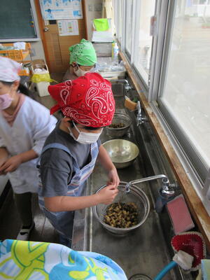 2年生が育てていた野菜園で、落花生の収穫が行われました。落花生は、他のマメ科作物と違い、花が終わると地中に潜るように伸びてサヤをつけ、豆ができることから、「落花生」と言われています。子どもたちは、その珍しい作物をわくわくしながら収穫しました。土のついた落花生を自分たちできれいに洗い、水に入れて塩ゆで、待つこと約30分。できあがりは、豆が入っているものあれば、うまく入っていないのもありましたが、子どもたちは、水分を吸った落花生の殻から水がピューっと飛び出すことも楽しみながらいただいていました。