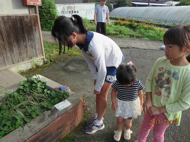 もう一戸の子どもたちは、おしゃべりしながら、おうちに向かって歩いて戻ります。