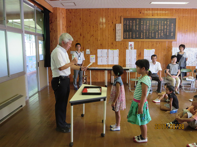 6年生が、「小学校での、夏休みプールが終わってしまいました。」と言って帰りました。