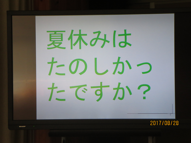 久しぶりに会った担任の先生にくっついたり、夏休みのお話をしたり。