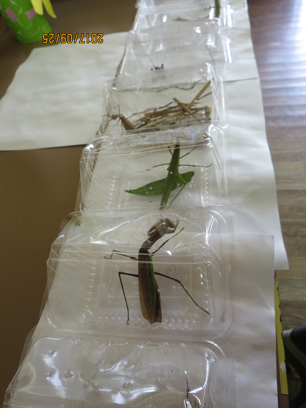 1号室 こうろぎさん 2号室 かまきりさん 3号室 ショウリョウバッタさん・・・7号室まで「満室」です。