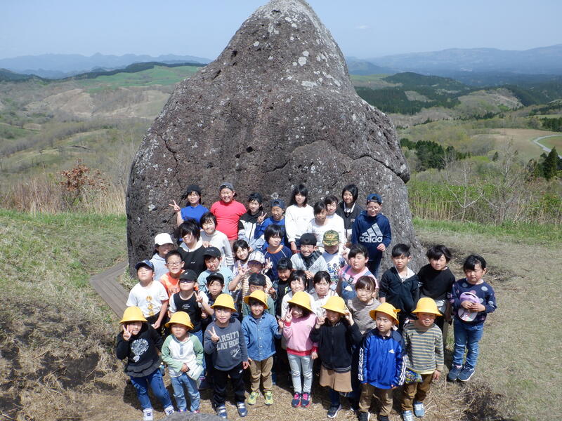 その後バスに乗り、押し戸石付近まで移動してから歩いて押し戸石まで向かいました。最初肌寒い印象でしたが、帰る頃には日差しも強くなり、子ども達も暑そうでした・・・