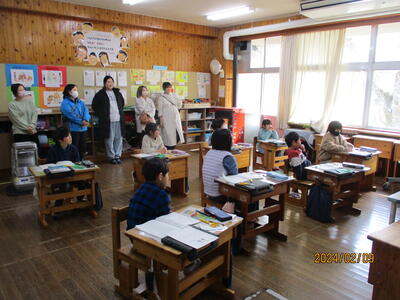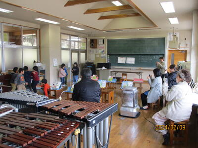 2月9日(金)は,公開授業(4校時)及び給食試食会でした。1年生は音楽,2年生と3・4年生は算数,5・6年生は体育の授業が公開され,保護者の方々は我が子はもちろんのこと他の学年の授業の様子も自由に参観される姿が見られました。中には,子どもたちと一緒に授業に参加されている場面もあり,子どもたちもたいへんはりきっていました。