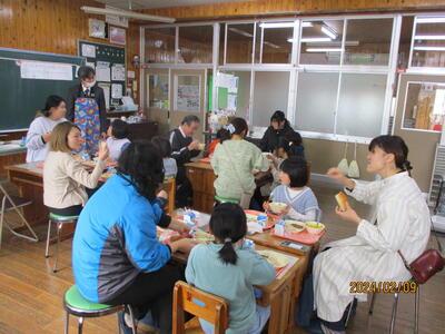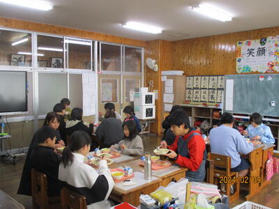 給食試食会は,4年ぶりに実施することができ,終始なごやかな雰囲気でした。保護者の方々からは,「久しぶりの給食試食会で嬉しかったです。」,「食事のマナーにも気をつけさせたいと思いました。」,「給食を食べてみて,我が家の味の濃さを見直したいと思いました。」などの声も聞かれ,給食をとおして前向きに考えていただける姿勢にたいへん感心いたしました。来年度は,栄養や食育について親子で考える時間なども行う予定です。