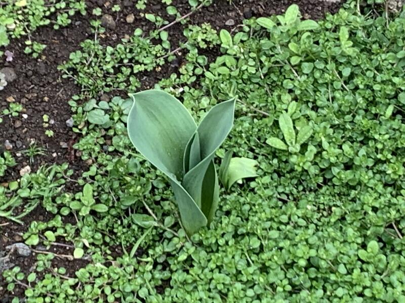 花壇に植えたチューリップの球根が芽を出し,こんなに伸びています。