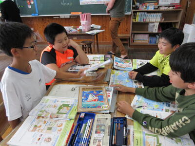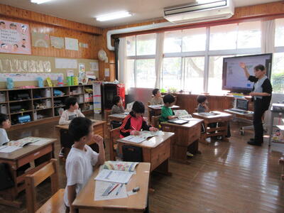 毎週木曜日の午後は、英語専科の本田先生とエドウィン先生が来てくださり、3~6年生を対象に、外国語の学習をしてくださっています。10日(木)に、前期最後の授業を覗いてみました。5・6年生では、内容を聞き取ったり、洋服や文房具などがどこから着たのかを調べて英語で尋ねたり、声に出して楽しく行っていました。たくさんの外国産の品物に囲まれていることにも気づいていたようです。