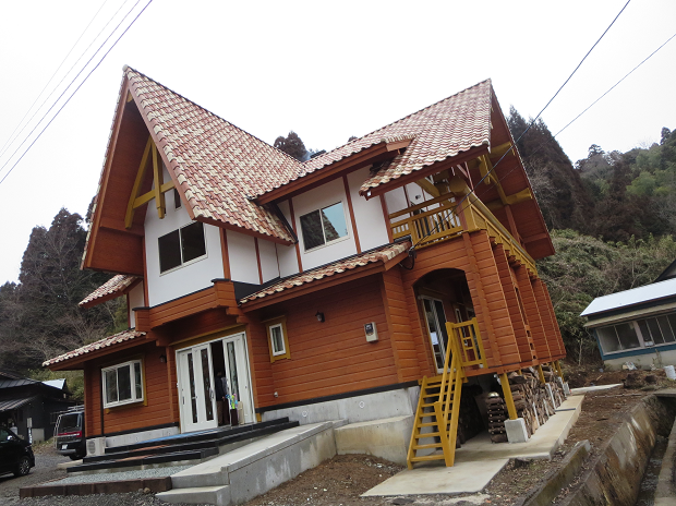 南小国の木を使ってログハウスを建てられた方のおうちにお招きいただきました。