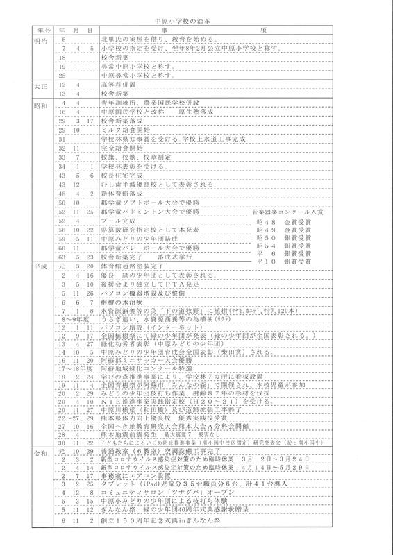 本校は、南小国町大字中原を校区として町の西部に位置しています。校区の中央を阿蘇外輪山を基点として山波が幾重にも走り、谷間には中原川や湯田川が流れて水田が開け、標高450m~800mの高地に点在する大小20あまりの地区があります。