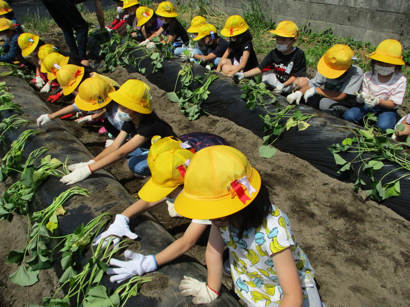 5月27日(金)に、さつまいもの苗植えを行いました。子どもたちは、さつまいもの植え方の説明を熱心に聞き、苗を一生懸命植えていました。秋の収穫が楽しみです。