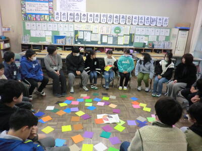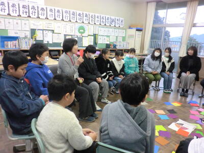 1月15日(水)5年生は、2・3校時にソーシャル・スクール・ワーカーの澤井先生を講師に迎え、RJサークルという話し合いを行いました。この話し合いは、子どもたちが互いのことを深く理解し、コミュニケーション能力を高めることを目的としています。