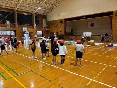 児童たちは、こま、おはじき、けん玉、羽根つき、めんこ、あや取りなど、昔ながらの遊び道具に興味津々。初めて触れる道具に戸惑いながらも、遊び方を教えてもらい、すぐに夢中になっていました。友達と交代しながら様々な遊びを楽しみ、体育館は子どもたちの歓声と笑顔でいっぱいになりました。