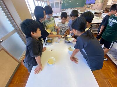 9月5日(木)の5年生家庭科では、「ご飯と味噌汁」をテーマに食文化について学びました。児童たちは、だし入りとだし無しの2種類の味噌汁を味見し、その違いについて話し合いました。また、児童文学「はなちゃんのみそしる」の紹介を通じて、味噌汁が日本の食文化においてどのような役割を果たしているのかを考える機会となりました。これからの授業では、子供たちが自分たちで味噌汁とご飯を調理する学習を通じて、食への感謝の気持ちやバランスの取れた食事の大切さを学んでいく予定です。