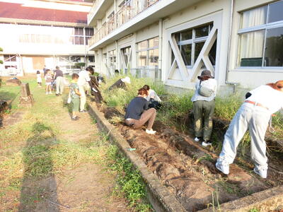 早朝よりPTA親子美化作業にご協力いただき、誠にありがとうございました。中庭の草取り、南門からの通用口の雑木伐採、テント設営など、皆様の力によって運動会に向け学校が大変美しく生まれ変わりました。見違えるほどの変化に、心から感謝申し上げます。今週から、運動会本番に向けて、各学年で徒競走や学年の演技練習が本格的にスタートします。