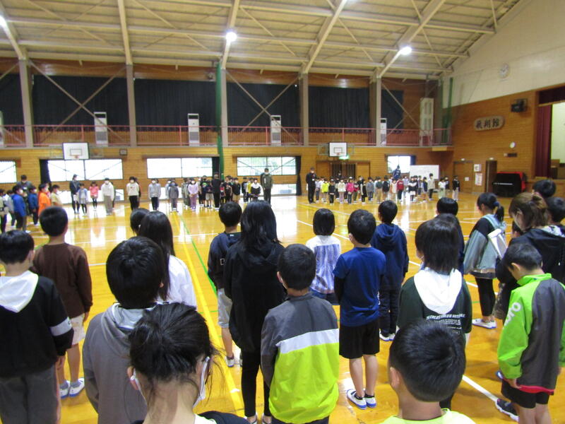 4月14日(金)全校朝会が行われ、校長先生より防災教育についてお話をしていただきました。校長先生が、熊本市内で7年前の熊本地震を経験された時のお話をしていただくと、子どもたちは真剣に耳を傾けていました。「地震などの自然災害はいつ、どこで起こるかわからないので、しっかりと備え、避難行動などについて日頃から話しておくこと」「いつでも先生の話や放送などを『聞く』ことを意識しておくことで、自分や友達の命を守ることにつながること」を伝えていただきました。その後、熊本地震で亡くなられた方へ黙祷を捧げ、防災について思いを強くしました。