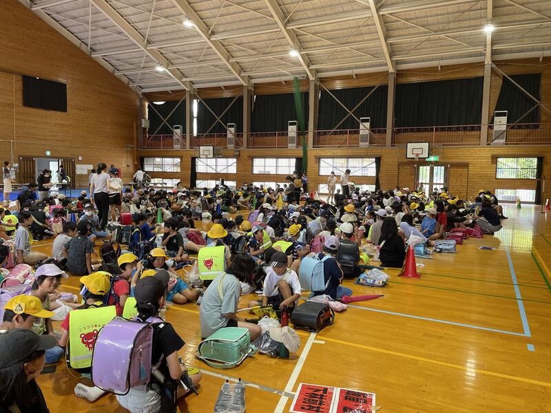 9月1日、不審者避難訓練を行いました。1年教室に不審者が近づいてきたと想定し、避難をしたり、鍵のかかる教室で待機したりする練習を行いました。体育館への移動は、とても静かに速やかにでき、訓練に臨む態度がすばらしかったです。体育館では、校長先生、中原駐在所の牧田さん、生活安全課の板井さんから、不審者対応についてお話をいただきました。「いかのおすし」を合い言葉に、普段から指示や放送をよく聞いて行動し、自分の安全を守れるようになってほしいと思います。不審者に遭遇した際、大声を出せない場合は、防犯ブザーを鳴らすのが有効ということでした。防犯ブザーの着用や定期的な電池のチェックをぜひお願いします。