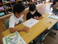 先週は、教科書の作品例を参考にしながら作りました。そして、今週は、出来上がった作品に、創意・工夫を加え改良しました。友だちと教え合ったり、作品を交換したりするなど、楽しく活動することができました。