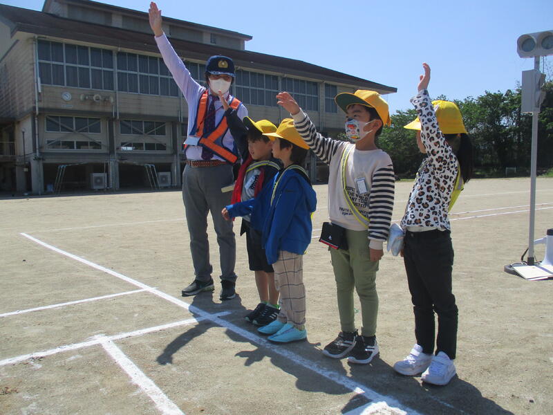 5月1日に交通安全教室が行われました。警察の方の話を真剣に聞くことができました。運動場では歩行練習をしました。横断歩道を渡るときなどの注意点を確認し、一生懸命に練習をすることができました。交通安全教室で学習したことを忘れず、安全に登下校してほしいです。ご家庭でもお声かけお願いします。