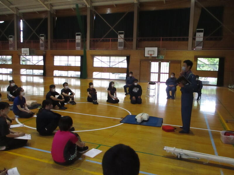 心肺蘇生法講習会 投稿日時 : 2022/06/10 学校サイト管理者 6月1日(水)に心肺蘇生法講習会がありました。近くの消防署より来ていだだき、心肺蘇生法や緊急時の対応について学ぶことができました。