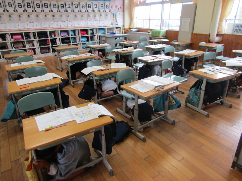 11月2日(水)午前10時に、緊急地震速報の「シェイクアウト訓練」を実施しました。「シェイクアウト訓練」とは、地震の際の命を守る動作「まず低く、頭を守り、動かない」を身に付ける訓練です。災害は、いつどこで起こるか分かりません。訓練を重ねることで、適切な行動を身に付けられるようにしていきます。
