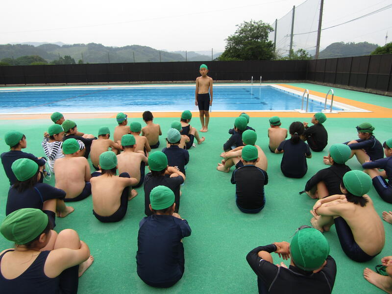 6月14日にプール開きを行いました。まず、プール学習のきまりを確認しました。子どもたちは真剣に話を聞き、そのきまりを守って安全に活動ができ、終始素晴らしい態度でした。学年代表の森田こうきさんが「4年生の時より長く泳げるようになりたいです。そして、安全に気をつけて学習をしたいです。」と目標を発表しました。これからの学習でも安全にしっかり留意しながら、泳ぐ楽しさやできるようになる喜びを味わっていってほしいと思います。