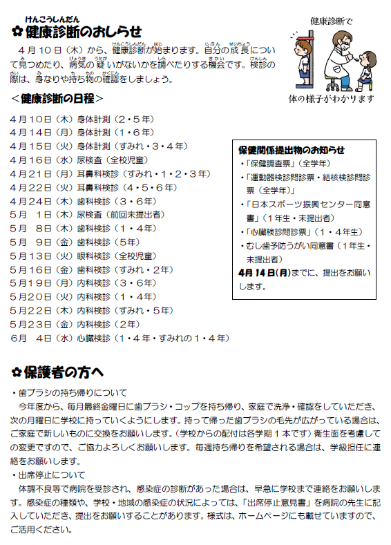保健便り4月号を発行しました。