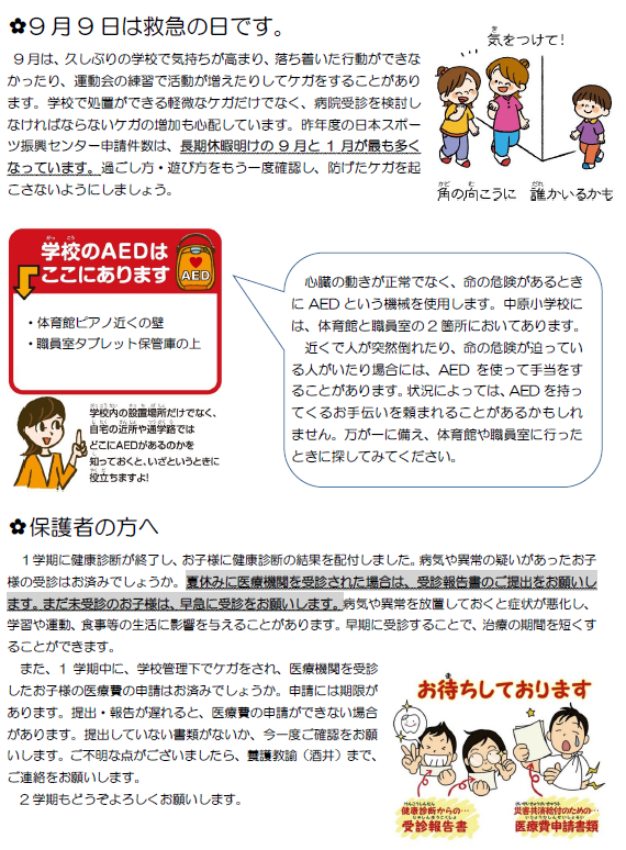 保健便り9月号を発行しました。