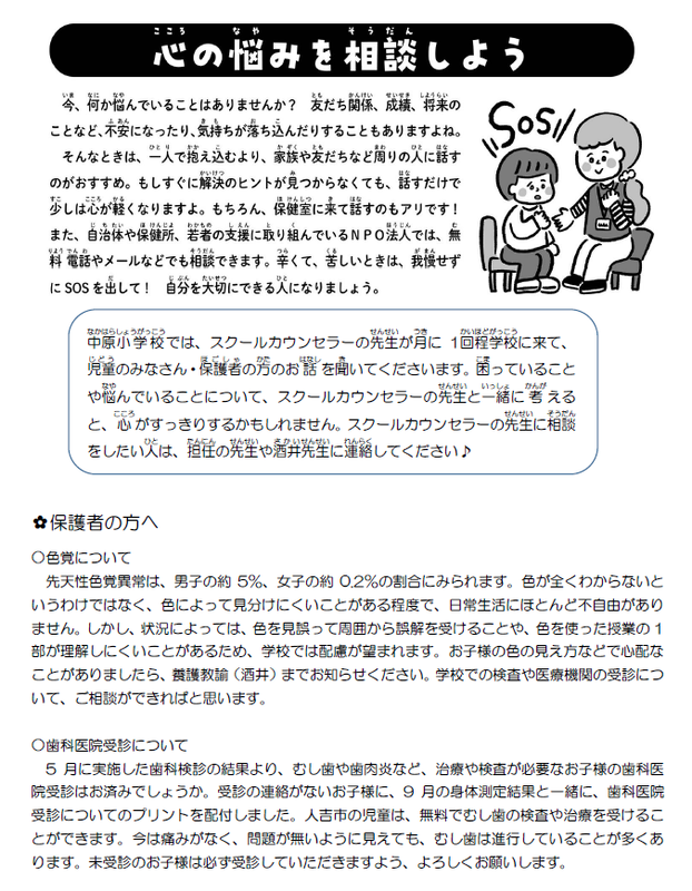 保健便り10月号を発行しました。