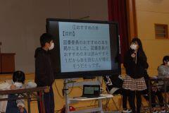 図書委員会からは「昼休みの本の貸し出し」、「集会でのアピール」の取り組みについて報告が行われました。