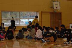 レクリェーションの後は、2階の多目的ホールにて6年生を送る会を行いました。各学級ごとに6年生へのメッセージが伝えられました。